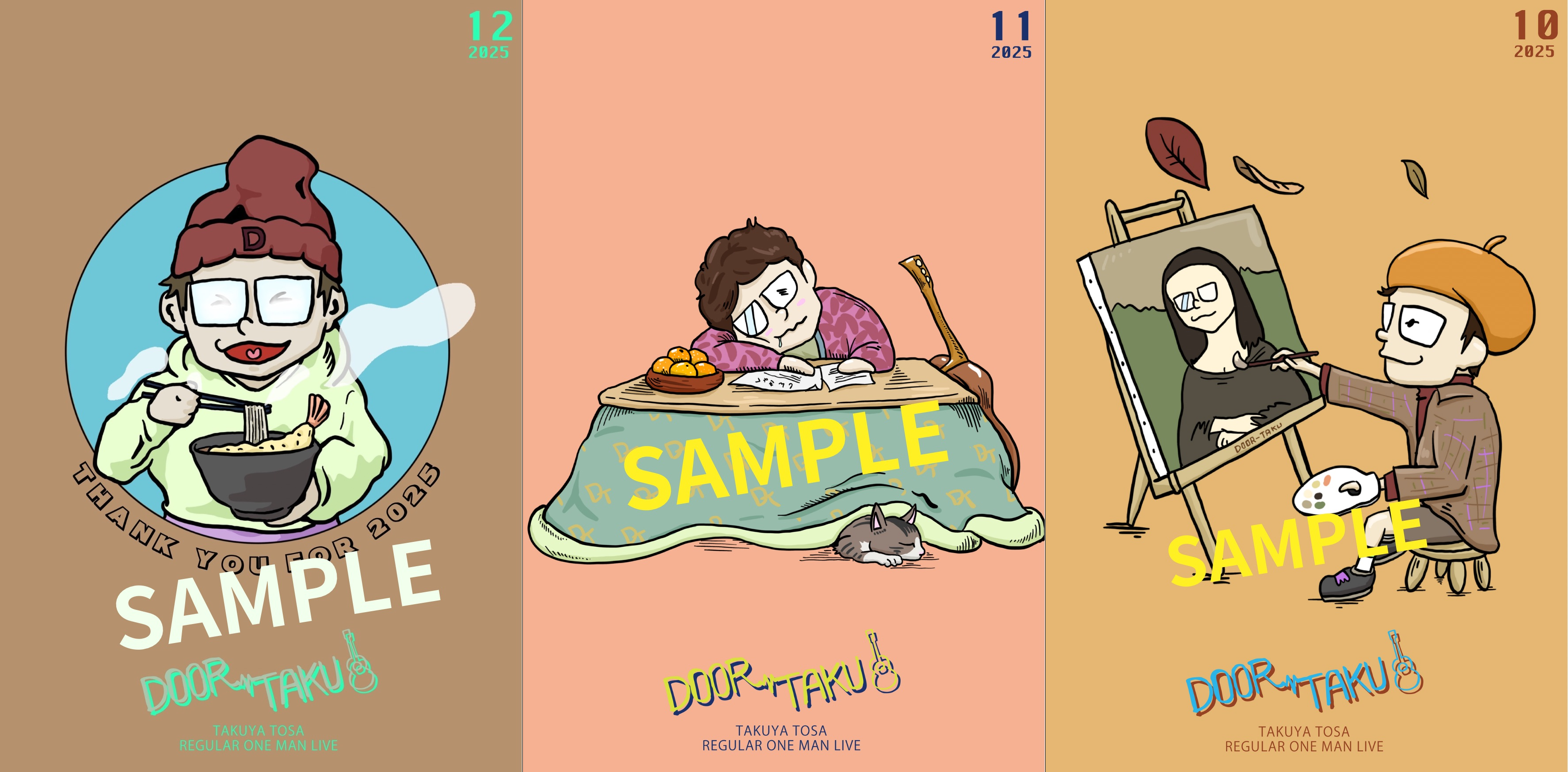 月例無観客配信ワンマンライブ~DOOR→TAKU(ドアタク)~の4周年を記念して、今年も、ドアタクポストカードのデザインを素材にした記念卓上カレンダーを販売いたします!