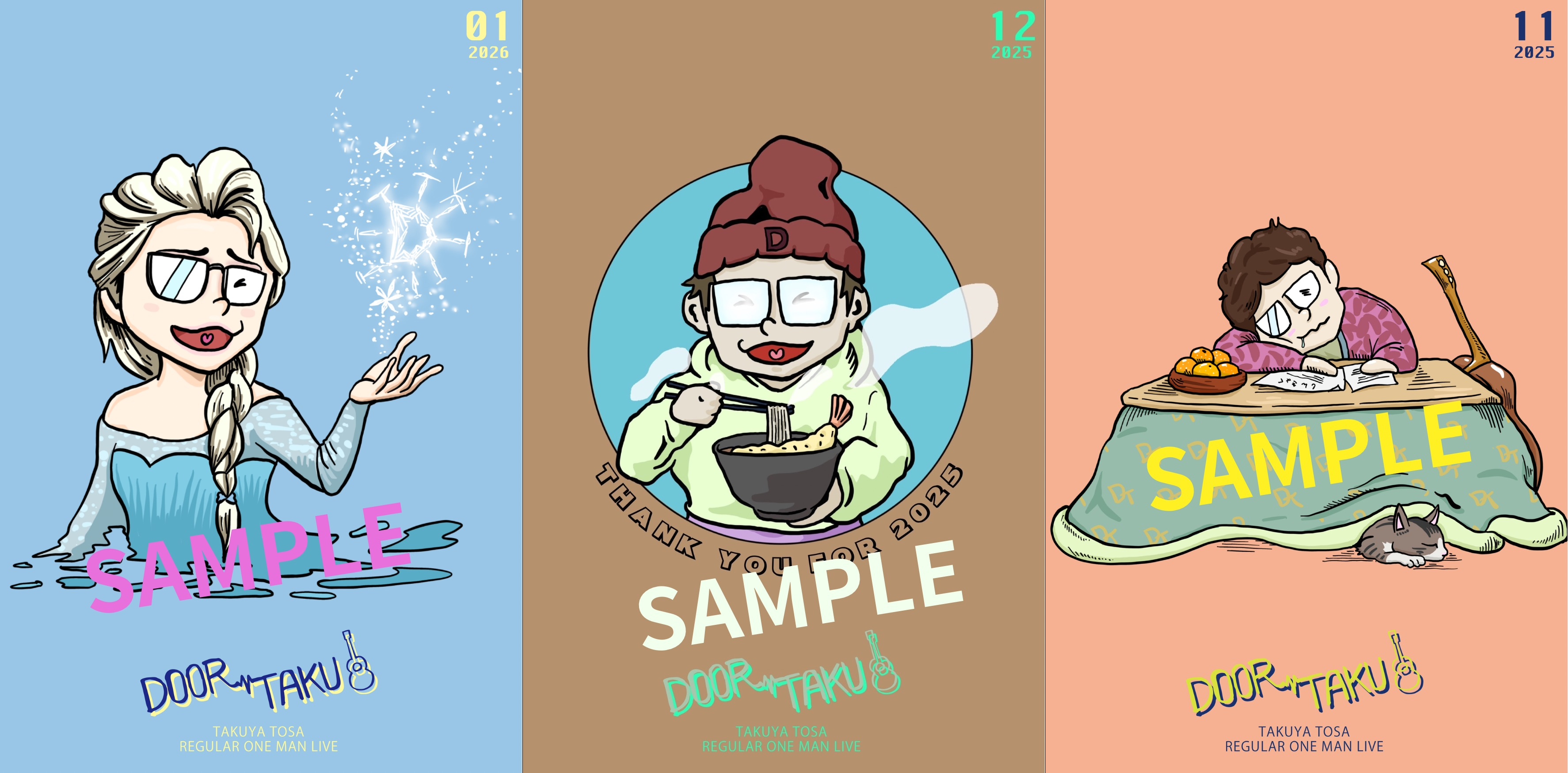月例無観客配信ワンマンライブ~DOOR→TAKU(ドアタク)~の4周年を記念して、今年も、ドアタクポストカードのデザインを素材にした記念卓上カレンダーを販売いたします!